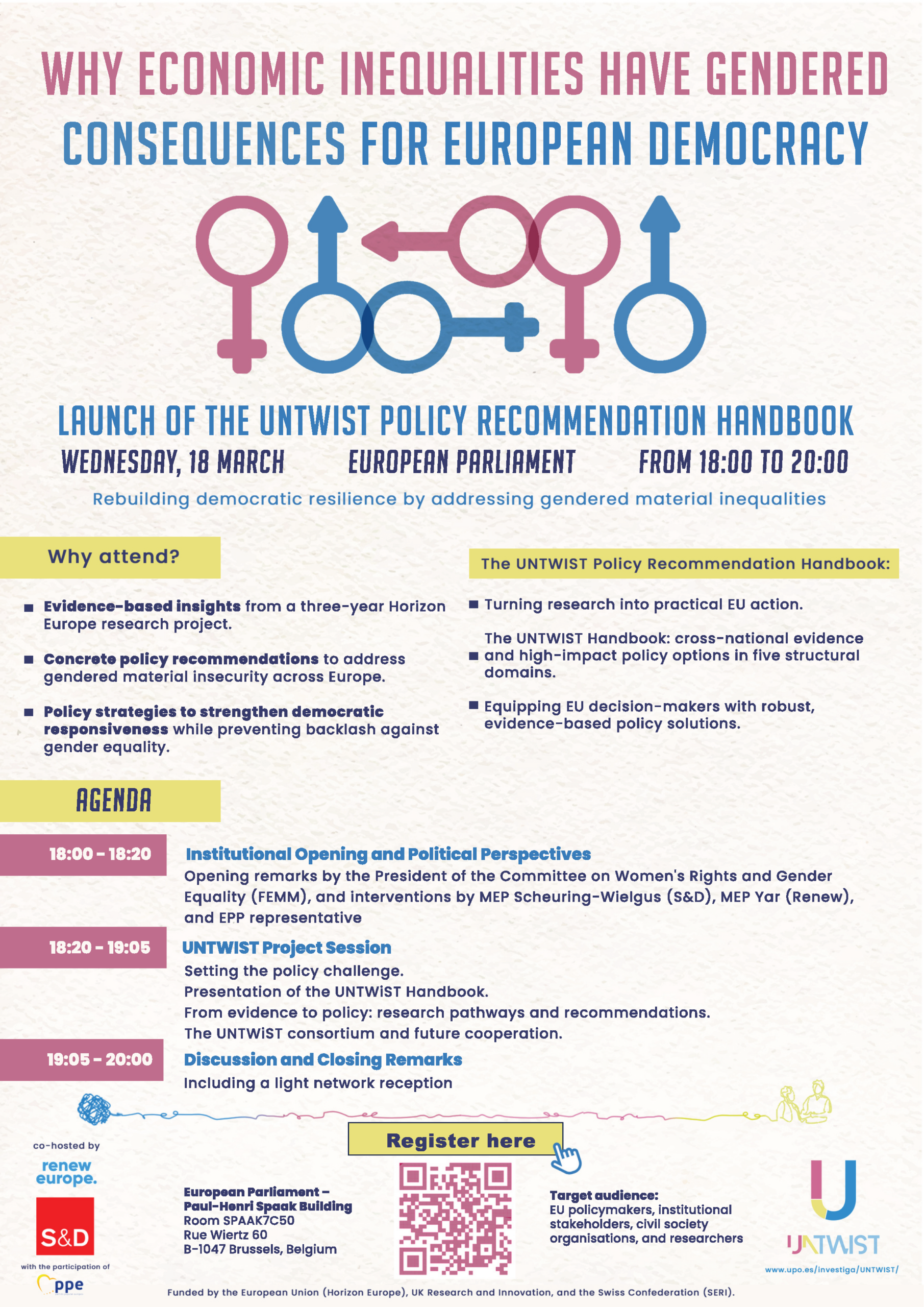 El lanzamiento marca la culminación del proyecto de investigación ‘UNTWIST: Policy recommendations to regain «losers of feminsm» as mainstream voters’, de tres años de duración, financiado por Horizonte Europa. El proyecto aporta datos transnacionales y los traduce en recomendaciones políticas concretas y de gran impacto para la UE.