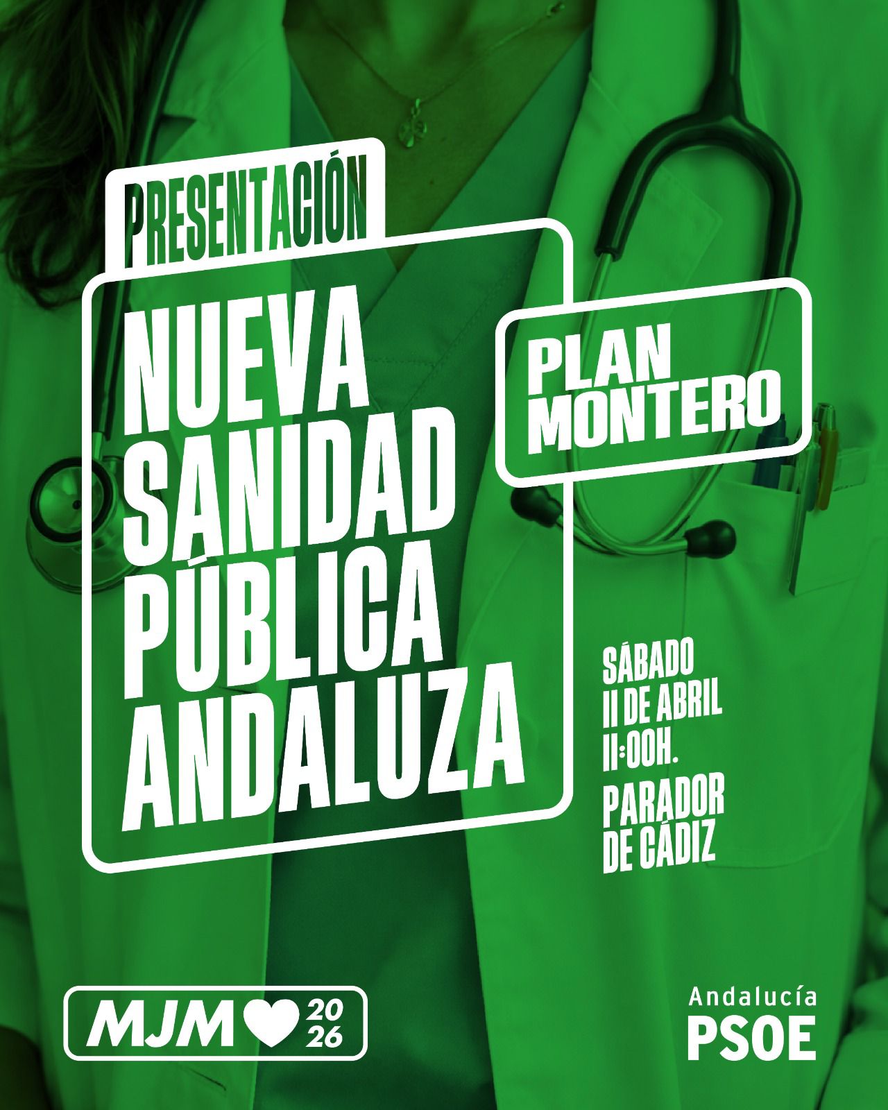 Lina Gálvez asistirá a la presentación del Plan Montero: Nueva sanidad pública andaluza que se realizará el sábado 11 de abril a las 11 horas en el Parador de Cádiz.
